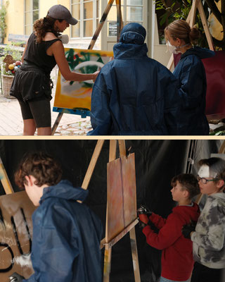 Malerei und Farben und am Ende ein wahres Werk mit nach Hause zu nehmen. Die Stimmung war glücklich und konzentriert. Kinder, Jugendliche und Erwachsene haben zusammen Kunst gemacht. Es war