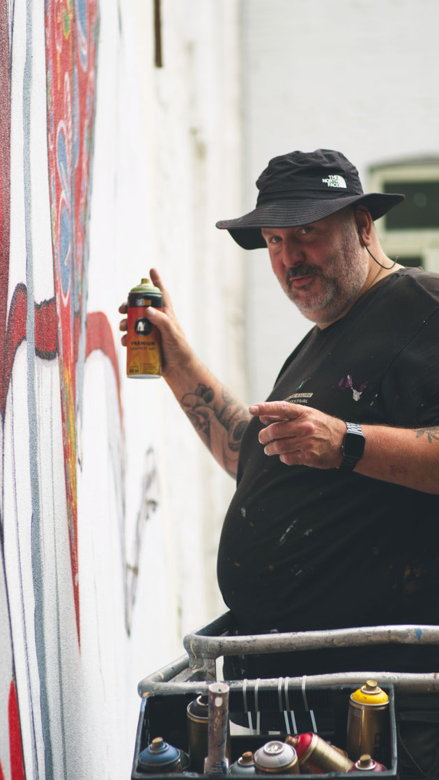 Der Grenzgänger zwischen klassischer Malerei und Urban Art vereint Spraytechniken mit Pinselkunst und schafft eine zeitgenössische Bildsprache im öffentlichen Raum.